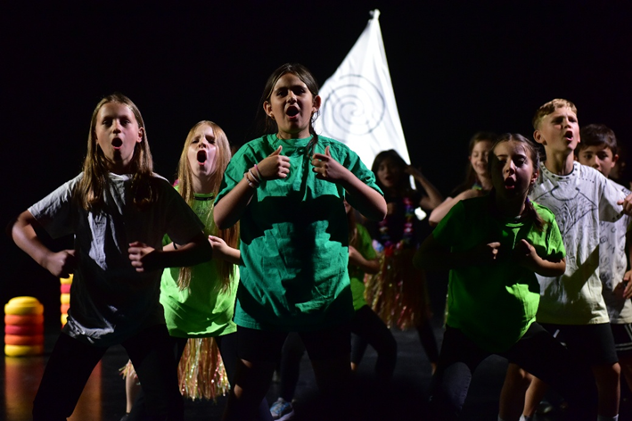 Es gibt eine Neuaufstellung der umtriebigen Partnerschaft: Der Fachbereich Musik ist mit zwei Lehrkräften im Boot! Die Theater AG besteht aus 29 Kindern, und sie proben auf der schuleigenen Theaterbühne. Das Projekt „der Ruf des Meeres“ ist angelehnt an den Film Vaiana (Originaltitel Moana) und wird als Musical inszeniert. 16 weitere Kinder aus den Jahrgängen 1-4 haben geholfen, Requisiten und Kostüme zu basteln, um das Bühnenbild fertigzustellen. Mit einigen Musikstücken und Tänzen des Stückes sind diese zusätzlichen Kinder mittlerweile vertraut und beteiligen sich in einigen Szenen und waren somit auch beim TUSCHpektakel dabei.